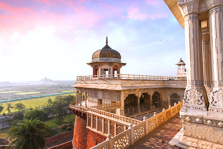 ◎ 무굴제국의 중심지 아그라 이동(3시간 소요) 야무나 강변에 위치한 철옹성 아그라 포트 ★유네스코 세계문화유산★ 누르자한의 아버지를 위한 영묘 야무나강 건너편 검은 대리석의 타지마할 터 ◎ 호텔 이동 후 휴식